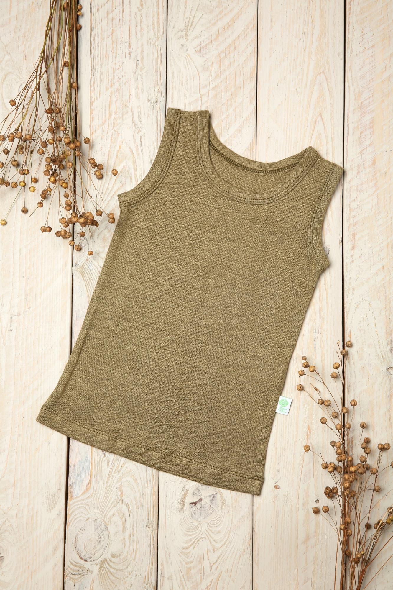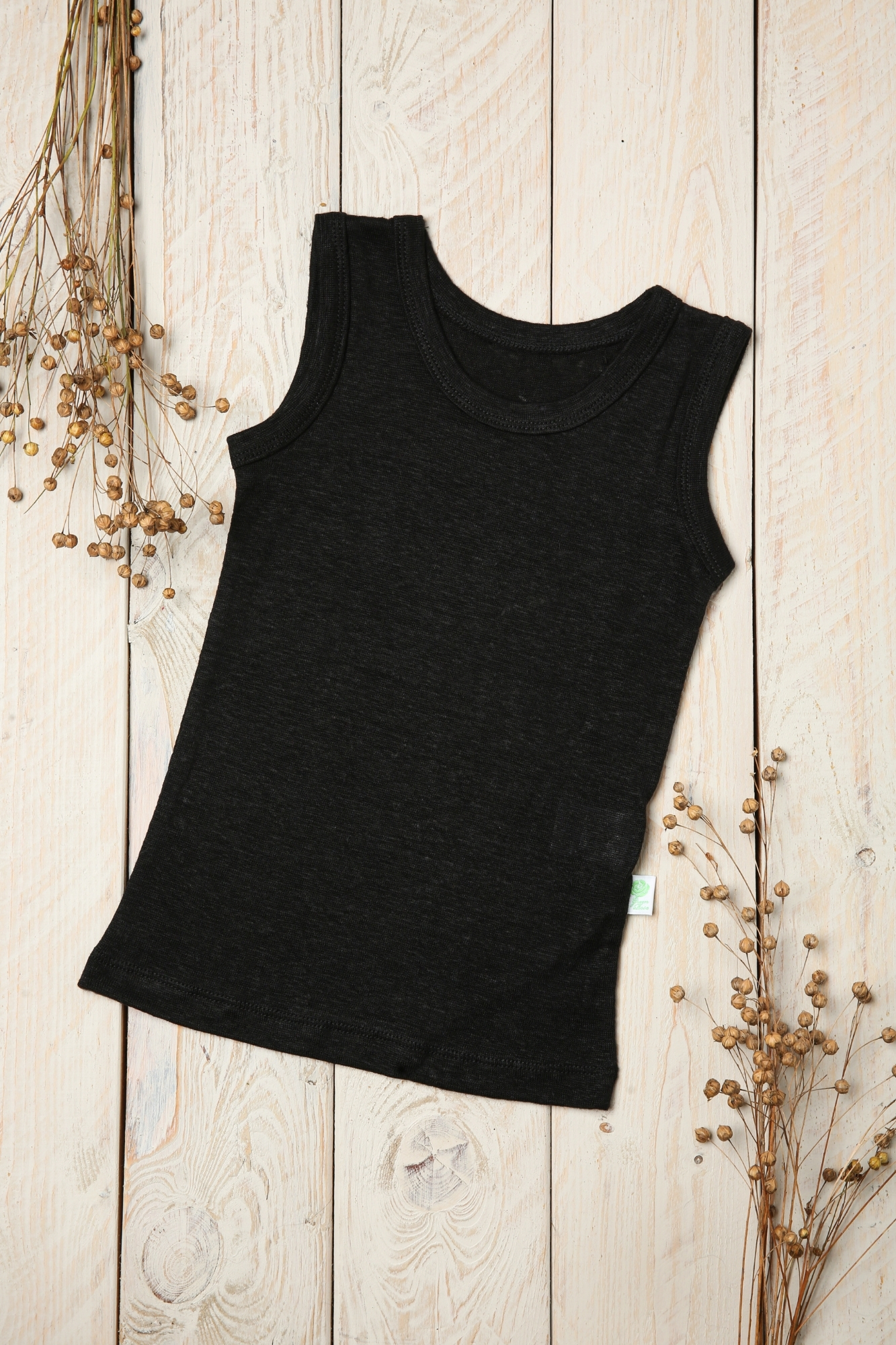 Vaikiški lino marškinėliai be rankovių yra praktiškas pasirinkimas vaikui, kai norisi natūralaus audinio ir patogumo judant. Šie marškinėliai pasiūti iš 100 % trikotažinio lino, todėl yra švelnesni nei įprastas lininis audinys. Dėl to jie šiek tiek prisitaiko prie judesio ir maloniai gula prie kūno. Dėl to lininiai rūbai berniukams ir mergaitėms tampa ne tik gražūs, bet ir realiai patogūs kasdienybėje – nuo darželio iki atostogų nuotykių.